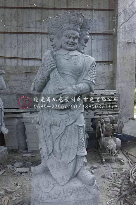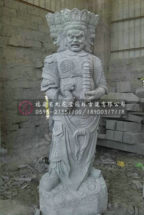三面金剛石雕像,莊嚴可畏,兇猛威武,表情有喜有怒,一個唱紅臉一個白臉。