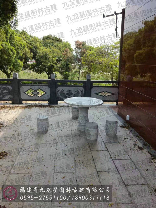 福州禪霞府青石香爐獅子仿古石桌椅安裝完畢