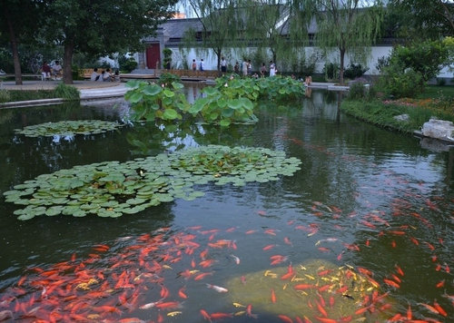 而金魚是源于晉、盛于宋。佛經宣揚"人死精神不滅",因果報應,不殺生,不偷盜,不淫邪,不妄言,不飲酒,慈悲為本,行善修道等等教義。受"不殺生"的影響,民間偶然捕獲的奇異魚類,亦紛紛被送往放生池放生,久而久之,一些佛寺放生池便聚集了為數眾多的金鯽魚。不論是西林寺還是月波樓、六和塔。眾多歷史文獻中都有對佛教的頌揚及放生的記載??梢哉f,中國金魚從一開始萌芽,就與佛教有著千絲萬縷的聯系。
