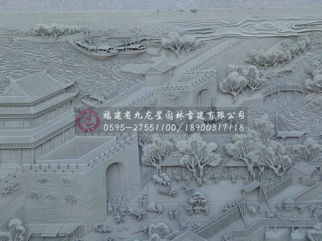 浮雕作為石雕藝術(shù)中的一種造型語言和形式,有它特有的塑造方法,它是在有限的塑造空間里對自然物象進(jìn)行體積上的合理壓縮,并通過透視和錯(cuò)覺等方法向人們展示較抽象的空間效果。由于浮雕是在第三度空間上經(jīng)過了壓縮,立體的形象被壓扁,形體上也見薄,所以又往往容易被人錯(cuò)誤地認(rèn)為浮雕就是圓雕的一半。