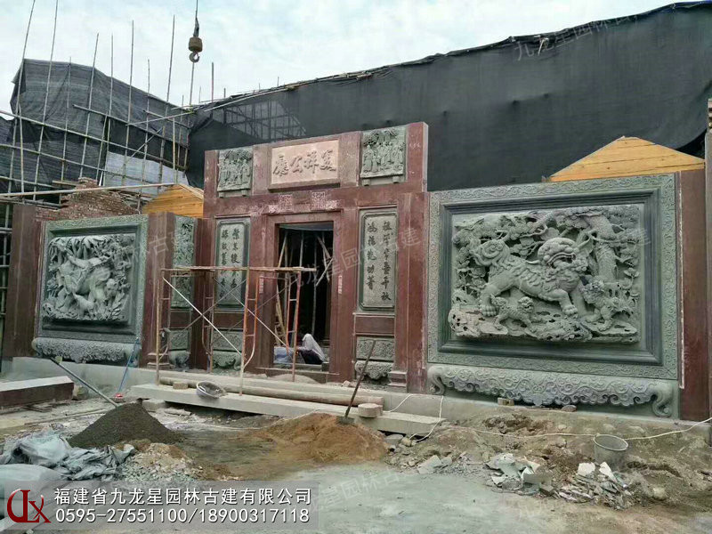 寺廟墻面浮雕壁畫安裝現(xiàn)場 九龍星園林古建