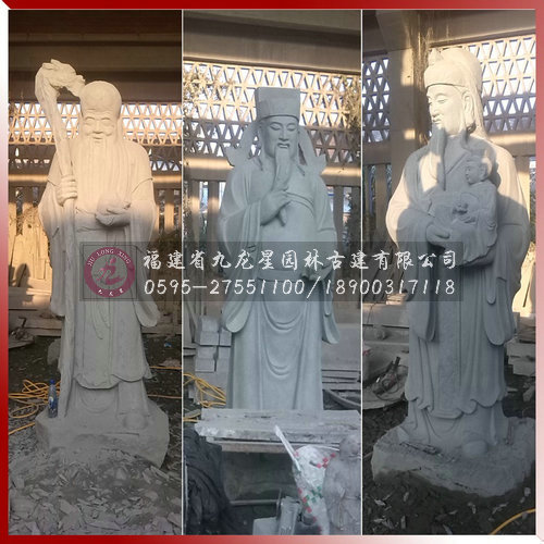 福祿壽三星是中國民間信仰的三位神仙,象征幸福、吉利、長壽,在道教流傳為天上三位吉神。福,頭戴官帽手持玉如意或手捧小孩為天官一品大帝,天官賜福由此而來;祿,手捧如意寓意高官厚祿(因被中國民間扭曲影像,所以現(xiàn)在的祿神都變成捧小孩的);壽,白色的胡髭,手持龍頭杖手捧壽桃意為長命百歲。