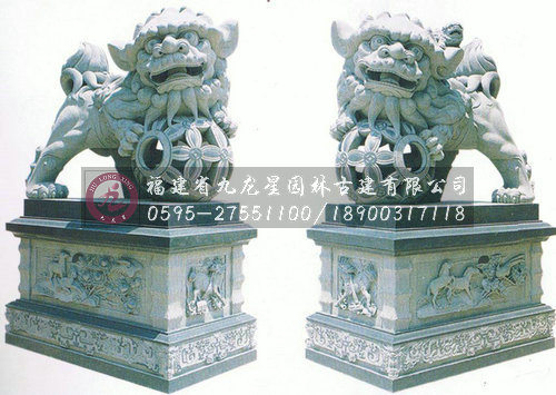 網(wǎng)球獅又常叫做戲球獅,它也是南方最為常見的一種石獅造型。網(wǎng)球獅的造型是從中國傳統(tǒng)的吉祥圖案雙獅戲球圖演變而來的。相傳獅為百獸之王,是權力與威嚴的象征。佛教經(jīng)典,對獅子非常推崇。《玉芝堂談薈》:“釋者以師(獅)子勇猛精進,為文殊菩薩騎者”。獅子戲球被認為是可以以驅(qū)邪化吉的,所以網(wǎng)球獅的造型在漢族民間很受人們的喜歡。網(wǎng)球獅的造型一般也是雌雄一對,但是雌雄獅子都是滾玩著一個大的繡球。