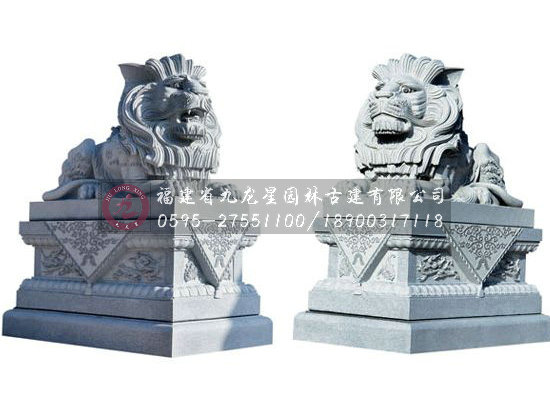 港幣獅是舶來之物,隨著西方銀行的傳入,最早出現(xiàn)在香港銀行的門前,所以因此而得名。這類石獅比較寫實,造型和真實的獅子造型差不多。它們一般是雄雌一對,或站或立于銀行大門兩側(cè),一般雄獅子嘴巴張開,寓意招財進寶。而雌獅子著閉著嘴巴,寓意守財之意。